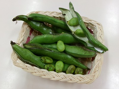 つきぐみさんの時から育てていたそらまめが実り、「いつとるの?」とわくわくしていた子どもたち。 先日みんなで収穫をし、数を