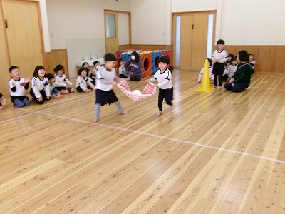 3月のお楽しみ会をしました。初めに3月生まれの子どもたちの誕生会です。 園長先生からのプレゼントに大喜びの子どもたちです
