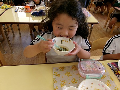 毎日とても元気な子どもたち。給食時間になるのが待ちきれず、「お腹すいた~」と毎日楽しみにしています(^▽^)/ 食欲旺盛