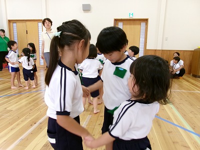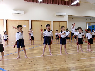 運動会に向けて練習をスタートしたつき組。年中では鳴子をしますが、初めて鳴子を見た子どもたちは「かっこいい!」と、とても興